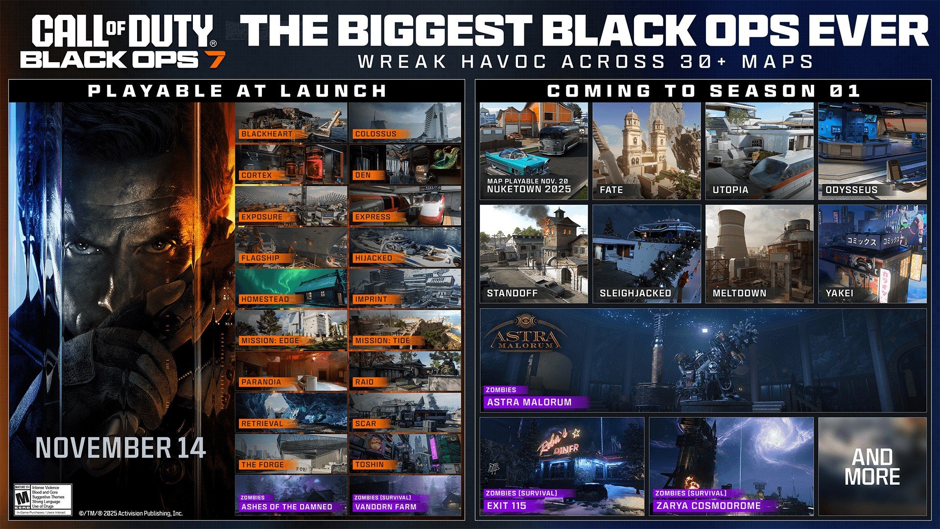Black Ops 7 will launch with a cooperative campaign, multiplayer mode, and Zombies mode this year. The team has also outlined every multiplayer and Zombies map that will be available at release and during Season 01 – so we’ll include that extensive launch content roadmap below for your review: